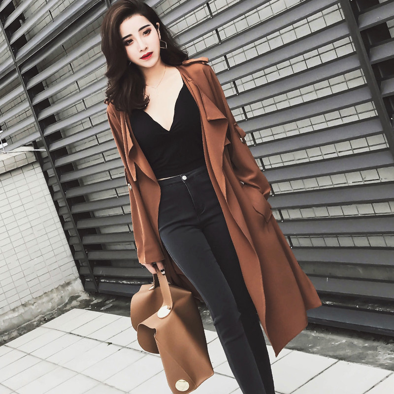 中长款的风衣穿上身具有走路带风的气场,加上收腰的设计还轻易勾勒完美身材,穿出街实力展现女性的时髦气质。