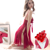 霏慕性感睡衣蕾丝镂空吊带睡裙透视薄纱雪纺女夏大码情趣内衣火辣