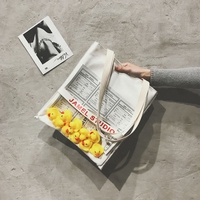 帆布包包女2018新款港风定制单肩小黄鸭原宿风手提收纳包透明包潮