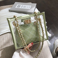 上新小包包女2019新款韩版菱格链条单肩包洋气百搭透明果冻小方包