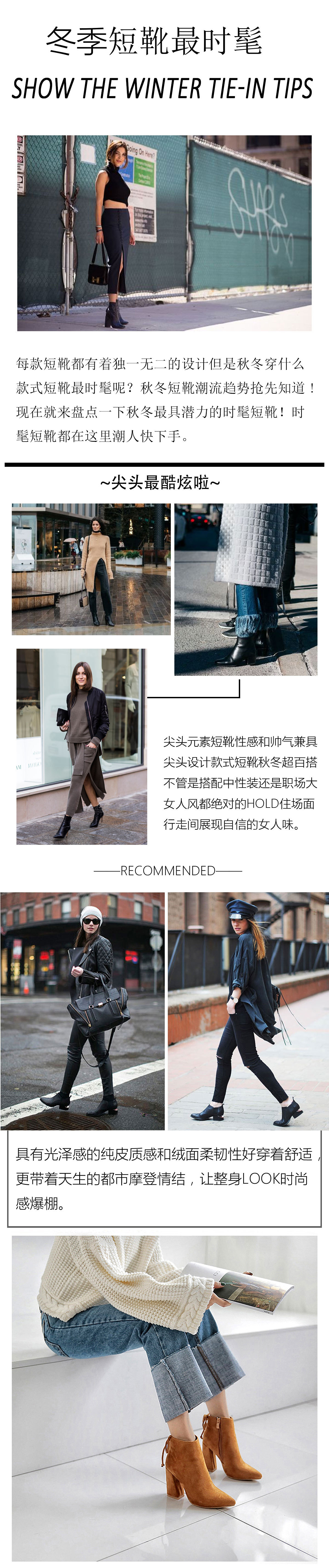 - 韩版2016秋冬新款圆头绒面方头粗跟短靴高跟裸靴侧拉链踝靴潮¥ 699.00