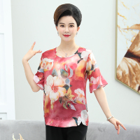 妈妈装夏装两件套40-50岁短袖t恤上衣阔腿裤套装中老年女装雪纺衫