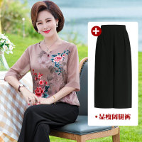 妈妈夏装短袖两件套装2019新款中年40-50岁t恤中老年女装洋气上衣