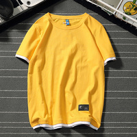 韩版清新假两件t恤男女情侣短袖衫纯棉宽松大码青少年百搭t恤男装