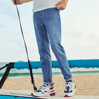 A21男装春夏季纯棉男裤牛仔裤男薄款小脚潮流 男生小直筒男款裤子